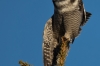 Die Sperbereule ist im Gegensatz zu vielen anderen Eulenarten vorwiegend tagaktiv, jagt aber auch in der Dämmerung. Kleinsäuger spielen eine übergeordnete Rolle im Beutespektrum.